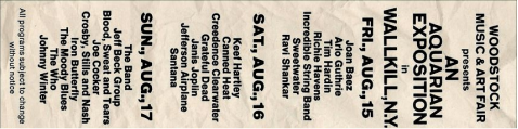 Местом проведения фестиваля был выбран небольшой городок Вудсток, штат Нью-Йорк. Однако, через некоторое время после начала возведения сцены и строительства ограждений, местные жители выступили против.